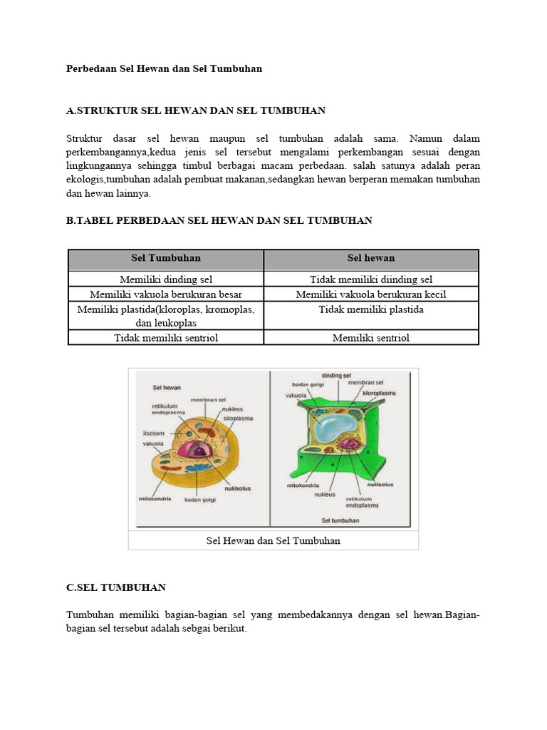 Tabel Perbedaan Sel Hewan Dan Sel Tumbuhan